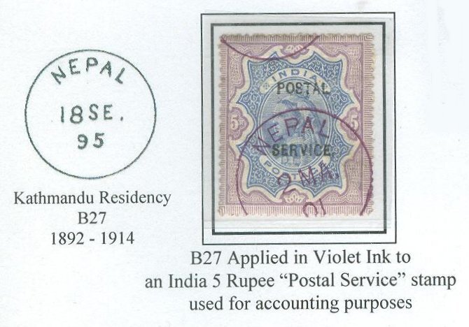 I suggest it is unique amongst the hundreds of revenue stamps, court fee documents and fiscal stamps and all postage stamps of the Gurkha Sarkar (government) as not bearing a value! The Devanagari inscription reads on the top line ‘Gurkha’ and I suggest that the bottom line reads प्रधानI ‘Pradhana’ which has several meanings such as chief, main, leader or Prime Minister, (who was at time of issue, Shree Teen Maharaja Bir SJB Rana), rather than आधा अन्ना ‘ahda anna’ as in half anna. I was encouraged to pursue this observation when I saw in the late Prof. Armand E. Singer’s book of his collection, “Nepal 1772-1961 and beyond” published by George Alevizos 1997, that carries an image on page 124 of “The budget letter card” that was sold for half an anna (2 paisa) to which the Camp stamp was to be affixed and generally cancelled with a few pen strokes.