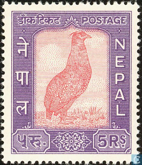 The elements of the stamp design features a coin issued by Raja Chakra Vartendra Malla (who was Newari) of Kathmandu 1668 AD and ruled for just one day. That was surely to put the Newars of the Valley in their place, as the Ranas had outlawed the speaking of Newari and many cultural aspects of the Newars in Kathmandu. Mookala? (Newari for “is that not so?”) The elements of the design depict the three methods by which the Ranas retained power: the Banastra (bow & arrow), the Pas (noose) over emblems of the Khukris (crossed weapons). This iconography was particularly appealing to the visiting native princes of India, but the significance was probably lost on the visiting British Raj.